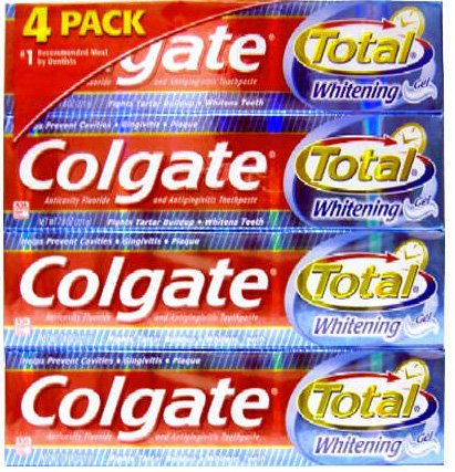 Buy Low Price From Here Now SKU NUMBER: 614966The Mininimum EXP date on product:1year.TITLE DESCRIPTION: Colgate Total 12 Hour Multi-Protection Toothpaste, Plus Whitening, Gel, 6 ozMANUFACTURER:COLGATE PERSONAL CARE CO.PRODUCT DESCRIPTION:Long lasting fresh breath protection, fights tartar, whitens teeth.Helps prevent cavities, gingivitis, plaque. Colgate Total® Plus Whitening has a combination of triclosan for gingivitis protection and fluoride for cavity protection. It has a breakthrough cleaning ingredient to whiten your teeth.Brush twice a day and you'll know your teeth are cleaner, whiter and your breath will be fresher around the clock. For a naturally beautiful smile and a clean mouth.INGREDIENTS:Active Ingredients:Sodium Fluoride (0.24%), Triclosan (0.30%).Inactive Ingredients:Water, Hydrated Silica, Glycerin, Sorbitol, PVM/MA Copolymer, Sodium Lauryl Sulfate, Cellulose Gum, Flavor, Sodium Hydroxide, Propylene Glycol, Carrageenan, Sodium Saccharin, Mica, Titanium Dioxide, FD&C Blue 1.SUGGESTED USE:Supervise children as necessary until capable of using without supervision.Adults and children 6 years of age and older - Brush teeth thoroughly, preferably after each meal or at least twice a day, or as directed by a dentist or physician. Children under 12 years - Instruct in good brushing and rinsing habits. (to minimize swallowing) Children under 6 years - Do not use unless directed by a dentist or physician.Antiplaque and antigingivitis use not proven in children.CAUCTION:Keep out of the reach of children under 6 years of age. If more than used for brushing is accidentally swallowed, get medical help or contact a Poison Control Center right away.